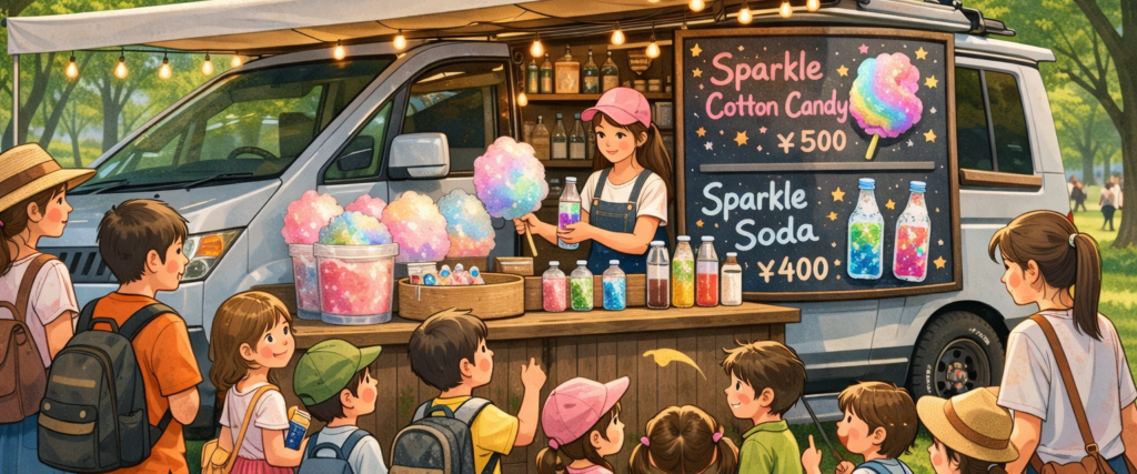 キラキラ綿菓子の移動販売